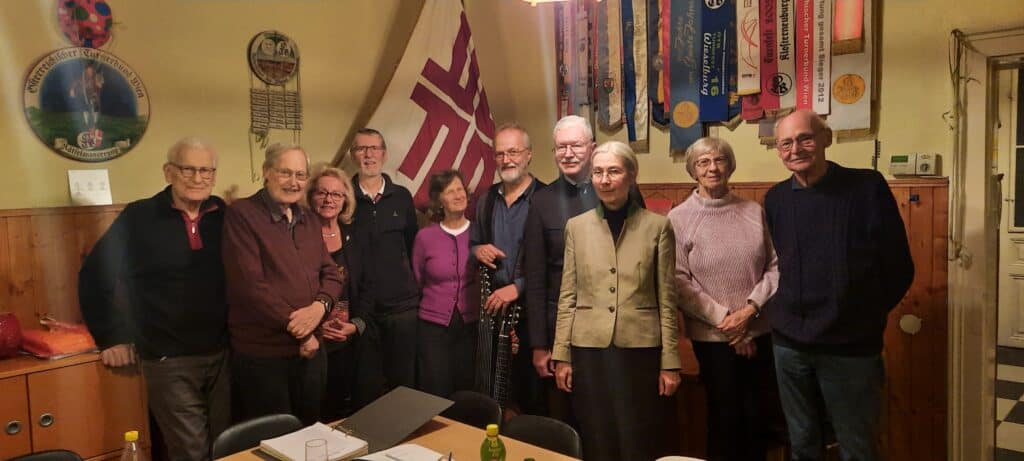 Vor urgrauer Zeit gab es im ÖTB Wien drei Sangesabende: man begann im Spätherbst (meist Anfang November) in Liesing, sang zur Mittwinterszeit in Ottakring und begrüßte den Frühling Ende April in Mariahilf. Von diesen drei Abenden ist nur mehr der in Ottakring übrig geblieben. Machen wir uns nichts vor: kein Vierzehnjähriger kann heute ein beliebiges Lied singen, kein Musiklehrer (Ausnahmen bestätigen die Regel) bringt einer Schulklasse auch nur „Kein schöner Land“ bei. In dieser liederfeindlichen Zeit ist es kein Wunder, dass auch zu unserem Liederabend nur 11 Turngeschwister zusammenfanden und auch diese wackere Runde schon einer höheren Altersklasse angehörte. Umso mehr bedanke ich mich bei Tbr. Volker Schöbitz, dass er mit seiner Gitarre unseren Abend in unglaulicher Weise adelte und zu einem musikalischen Erlebnis machte. Nach einem „Pflichtteil“ mit 12 vorgegebenen Liedern labten wir uns an verschiedenen Würsten, liebevoll von Elisabeth Wagensonner zubereitet, bis im „Kürteil“ jeder sein Lieblingslied auswählen und gemeinsam mit den anderen singen durfte. Einzige Vorgabe war, dass das vorgeschlagene Lied auch dem Urheber bekannt sein musste. Nach zwei Runden fröhlichen Sanges löste sich die Runde dann relativ rasch auf, weil die Parkscheinpflicht bis 22 Uhr doch einige zu ihren Fahrzeugen rief. Ich bedanke mich bei jedem einzelnen, der mitgesungen hat und hoffe sehr, dass in den Folgejahren auch jüngere Sänger den Weg nach Ottakring finden.